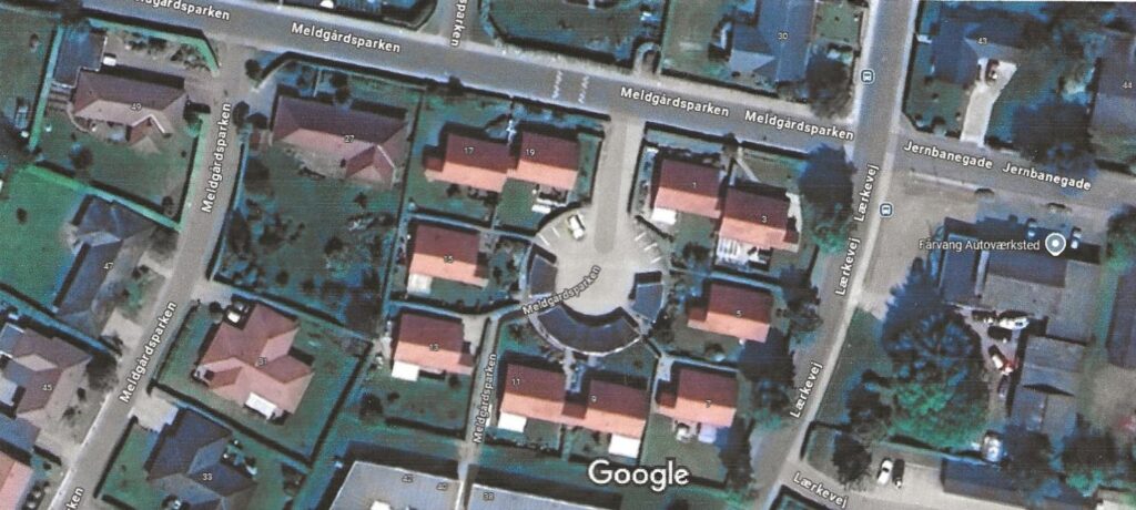 Vi er en lille hyggelig andelsboligforening i Fårvang med 10 andelshavere. Der er 4 fritliggende huse, og 3 x 2 huse bygget med redskabsskure imellem disse. Alle huse har egne separate haver. Der er tilhørende carporte til alle andele. Der er to størrelser boliger på henholdsvis 90 og 96 m2.